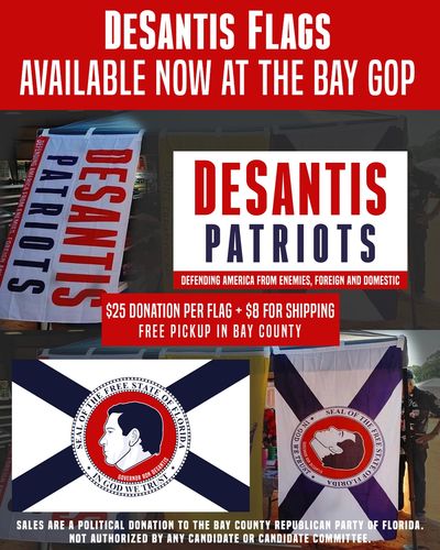 Each flag is available with a $20 donation, with pickup at Bay GOP HQ or an upcoming BAY GOP Event. For a $8 donation, we will ship anywhere in the US. (Rush shipping is not available.) Shipments go out on Saturdays, email will be sent.