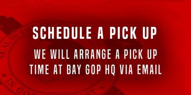 Click here to schedule a pick-up at Headquarters with a Bay GOP Volunteer.